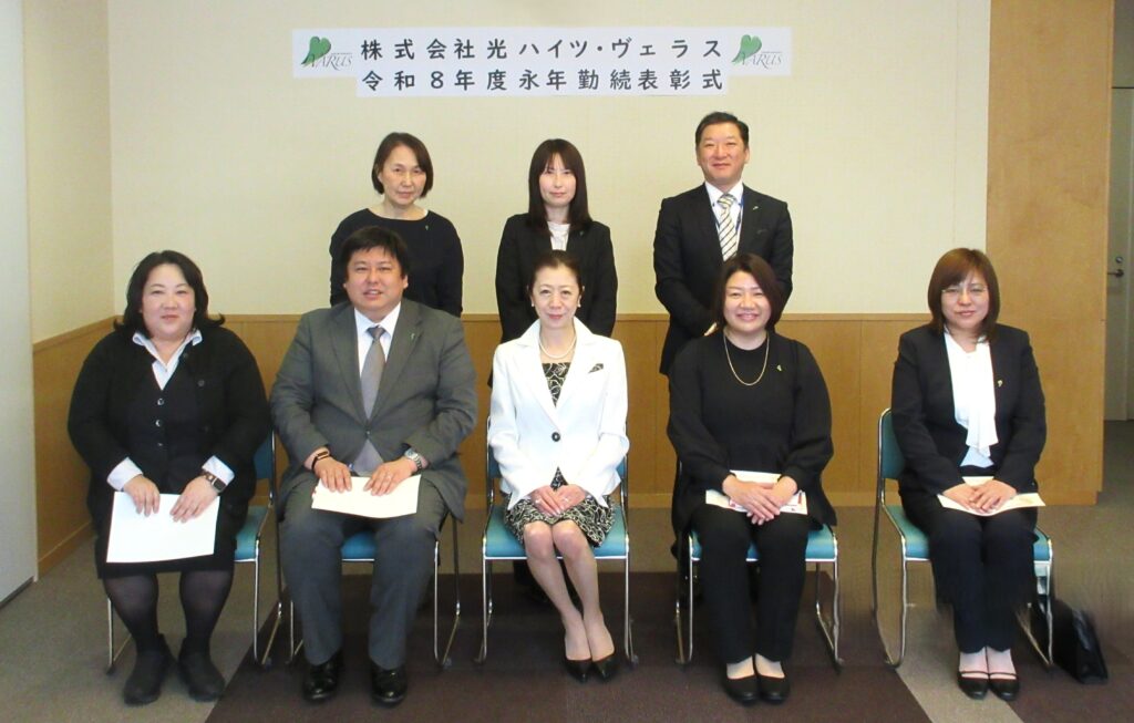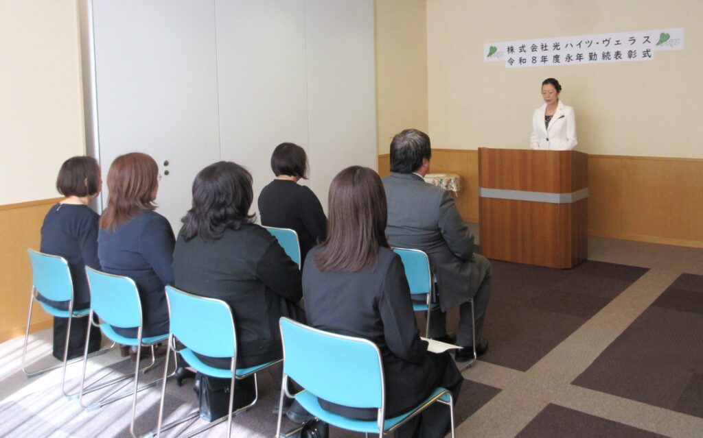 その後、受賞者代表より、「これまでの年月は決して平坦な道のりではなく、多くの学びと挑戦の連続でした。本日まで勤め続けてこられたのは、会社の皆様のご指導とご支援、そして共に働く仲間の存在があってこそです。今回の表彰を一つの節目として、これまでの経験に甘んじることなく初心を忘れず、今後もより一層業務に励んでまいります」と、力強い決意が述べられ、式は閉会いたしました。