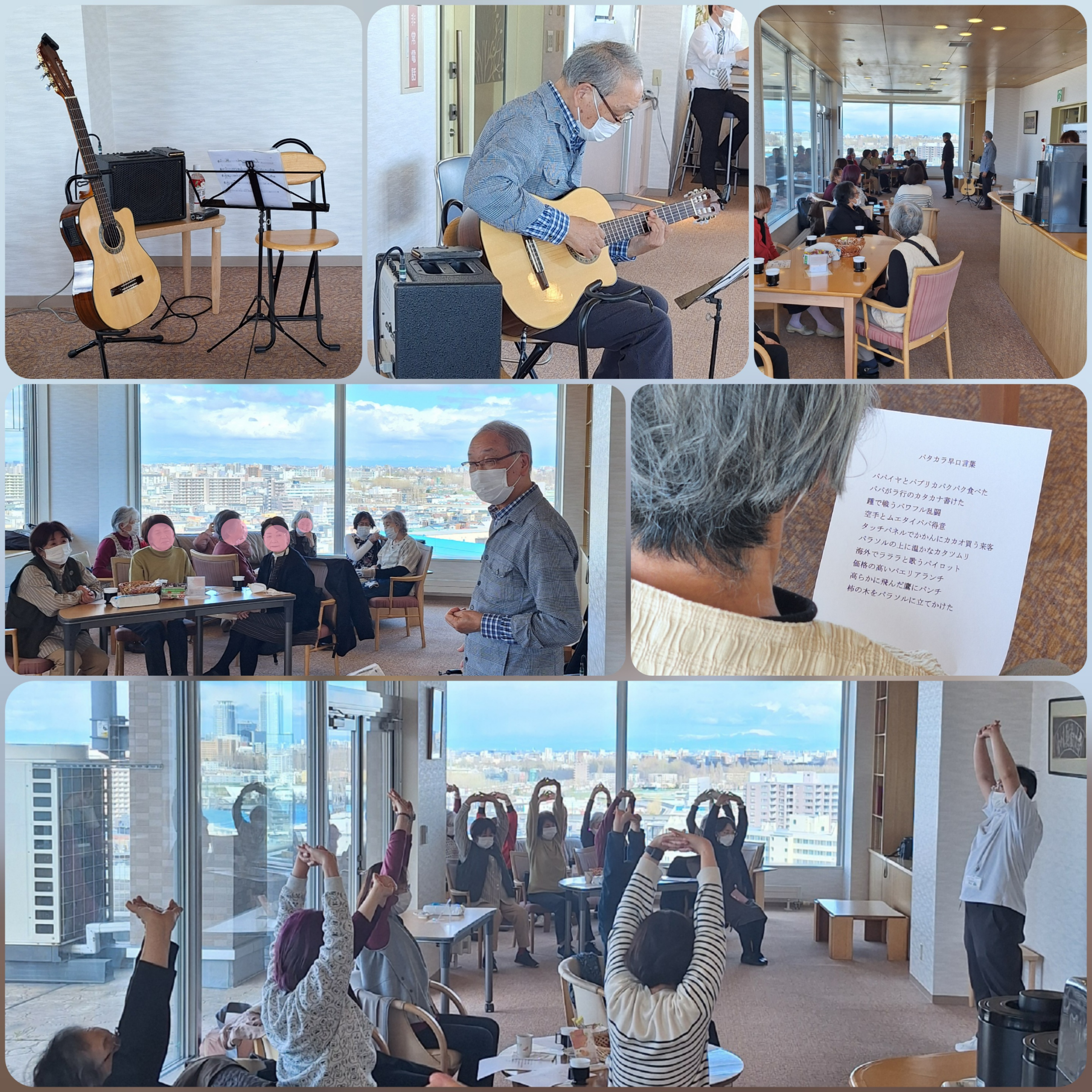 会場は14階のスカイラウンジ。本日のお楽しみは、ご入居者によるギタージャズ演奏🎸